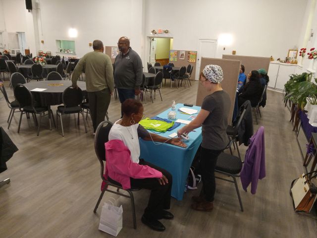 May 18, 2024-A Health Fair sponsored by the Virginia Conference Men of Zion of the AME Zion Church was held at Greater Walters in Newport News. Pastor Rev. Dr. Mark W. Bass is Director of the Va. Conference Men of Zion. Rev. Willie Dixon is Associate Minister. The Health Fair included representatives from Hampton YMCA Community Health, CenterWell Senior Primary Care (Dr. Anthony Hayes and Associates), Dr. Keith Newby (cardiologist), Charlie Hill (Men's Prostate Associates) and medical technologist Debra Robinson. It also featured blood pressure and other screenings, Exercise Class with Theresa Racine and nutrition discussions.